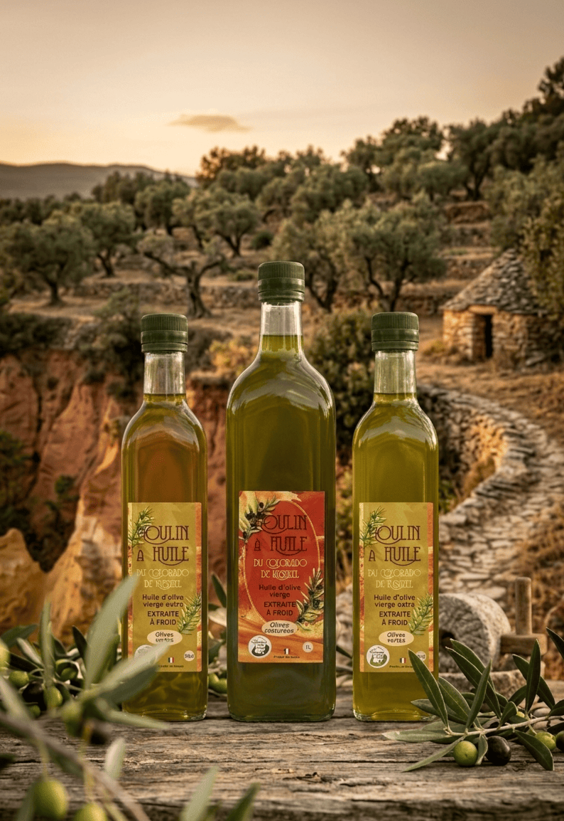 Nous sommes ravis de vous accueillir dans notre boutique en ligne dédiée aux huiles d’olive artisanales, produites avec soin et passion dans notre moulin, situé au cœur du Luberon, à Rustrel. Le Moulin du Colorado Provençal perpétue des méthodes traditionnelles de production d’huile d’olive, en harmonie avec la nature et l’environnement. Chaque goutte d’huile que nous proposons est le fruit d’un savoir-faire familial, ancré dans une longue histoire d’amour pour l’olive et ses bienfaits. À travers notre boutique, nous vous offrons l’opportunité de découvrir des produits authentiques, élaborés avec les meilleures olives récoltées localement. Découvrez notre gamme d’huiles d’olive vierge extra, aux saveurs subtiles et aux arômes exceptionnels.
